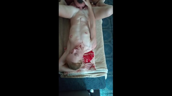 Śliczna, subtelna blondynka posuwana przez faceta i kończy ze spustem do ust.